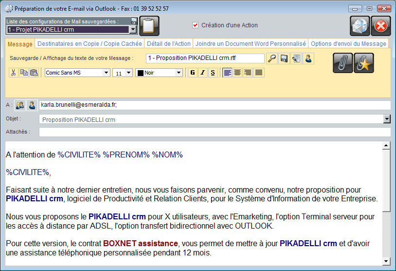 - Réalisez et envoyez vos propositions commerciales (envoi par courrier, fax, e-mail avec fichier PDF attaché).