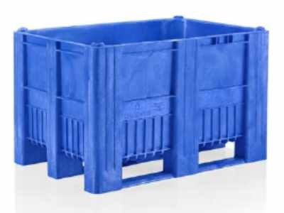 Cette caisse palette plastique moulée est idéale pour l'entreposage et le transport de denrées alimentaires.