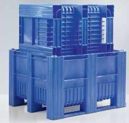- Empilable grâce à des pions de gerbage situés aux coins du palox permettant le verrouillage des caisses et leur transport en toute sécurité
