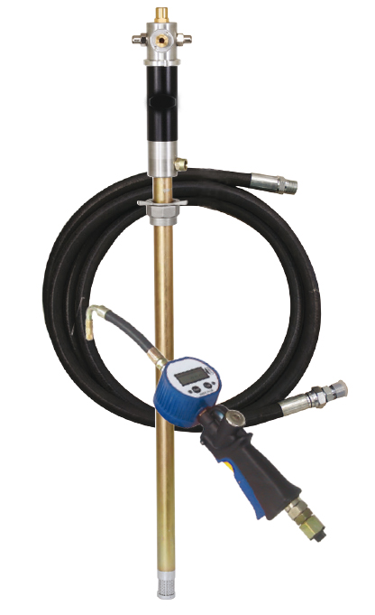 Cet ensemble fixe pour tonnelet et fût d’huile, avec pompe pneumatique 3/1 + flexible 4 m + poignée compteur