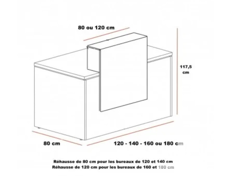Ce bureau d'acceuil se décline en différentes dimensions et coloris pour répondre à vos besoins.
