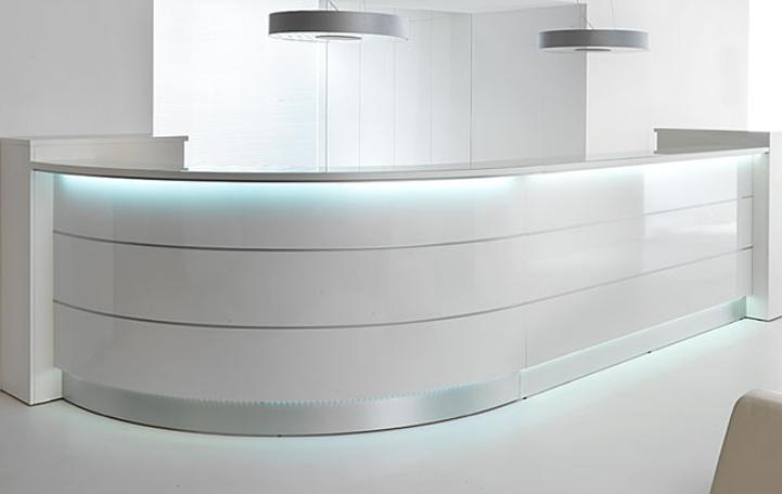 Banque d"accueil de haute design et disponible en plusieurs couleurs.