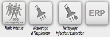 Facile d’entretien, il se nettoie à l’aspirateur ou par injection /extraction et retient et dissimule la saleté.