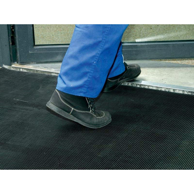 Conçu pour usage extérieur, le tapis est muni de bords biseautés pour une entrée sans fosse.