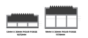Les profilés aluminium sont disponibles en largeur 30 mm ou 50 mm, selon le niveau de trafic et les contraintes du site.