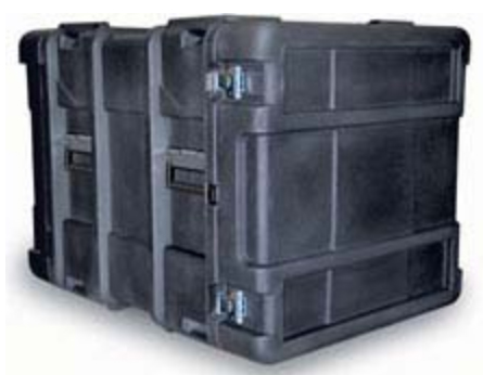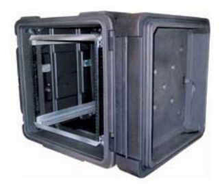 Ces conteneurs double entrée à usage intensif disposent d'un rack 19" suspendu au moyen de 8 amortisseurs de chocs élastomères.