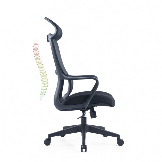 Le dossier en résille, complété par une partie souple dynamique, suit naturellement la courbure de votre dos et contribue à limiter les tensions au niveau des lombaires.