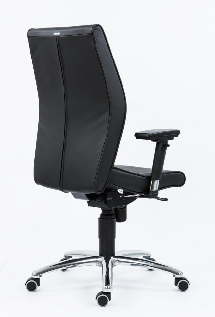 Les accoudoirs sont réglables en hauteur. Son piétement standard est en aluminium poli avec une base de 70 cm. Le réglage de la hauteur du siège se fait par un vérin à gaz. La charge maximum du siège est de 160 kg. Fabrication européenne.
