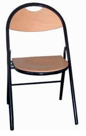 Taille 6 Hauteur d’assise : 47 cm Piètement tube acier rond Ø 25 mm, finition époxy noir Assise et dossier tapissés ou hêtre multiplis Coloris tissus : noir, bleu et rouge Pliante