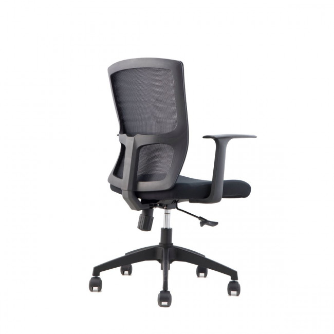 Confort respirant : dossier en résille noir pour une ventilation optimale et assise en tissu noir avec mousse haute densité (45 kg/m³).