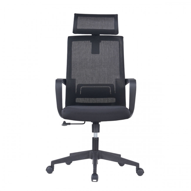 Dossier résille noire avec soutien lombaire réglable en hauteur.