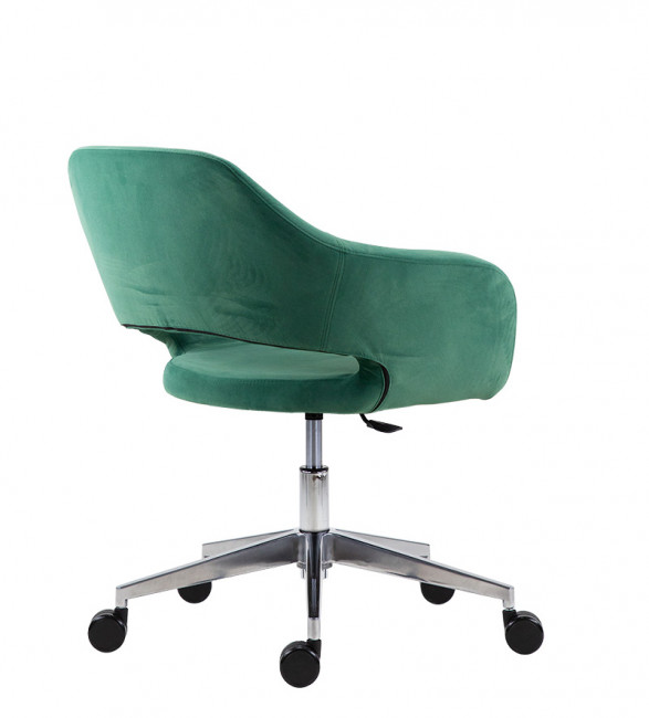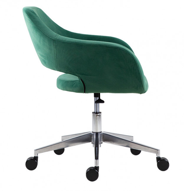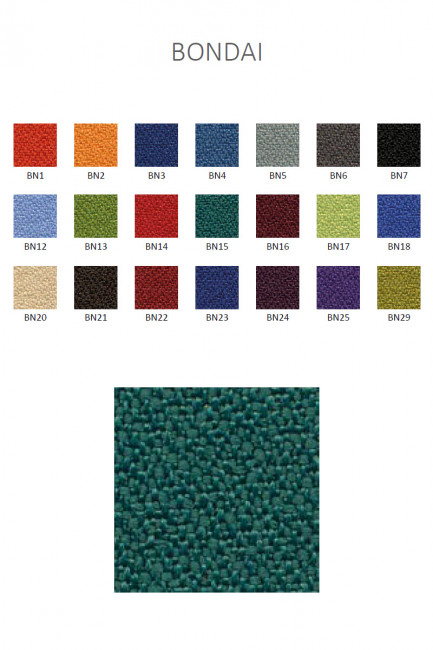 Le Fauteuil Bern alu est composé d'une assise rembourrée en mousse polyuréthane à froid et recouvert de tissu. Un grand choix de tissu est disponible : Bondai (tissu Non feu M1), Bloom (tissu enduit), Xtrem (tissu non feu M1), Laine et cuir. La structure et le piétement avec base étoile sur roulettes est en acier chromé.