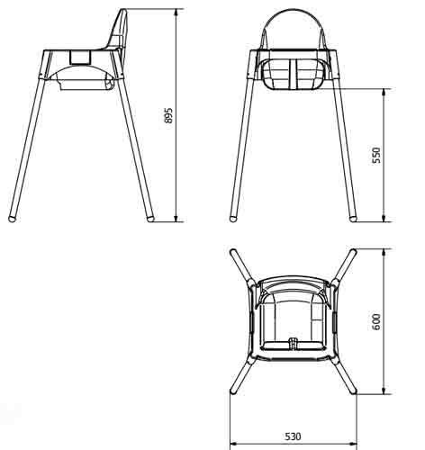 Les pieds en acier assurent une bonne stabilité. Le dossier haut offre un meilleur maintien pour l’enfant.