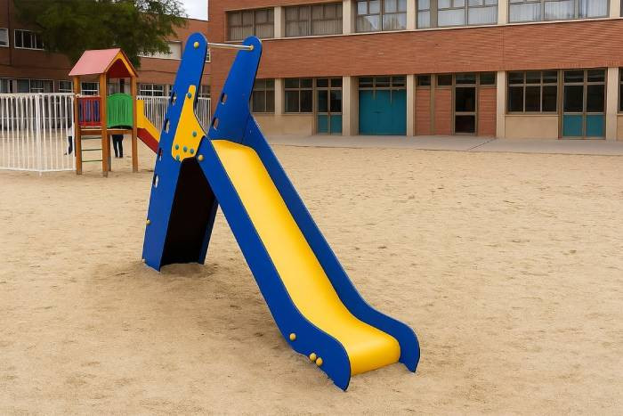 L’installation peut être réalisée sur dalle béton ou sur sol souple, avec plusieurs options d’ancrage sécurisées. Vous intégrez facilement ce toboggan extérieur pour aire de jeux dans votre projet d’équipement de jeux pour collectivité ou dans une structure de jeux enfants existante.