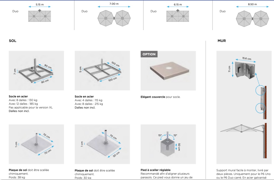 Chaque parasol est conçu pour s'ouvrir et se fermer de manière indépendante, permettant une personnalisation complète de l'ombre selon vos besoins.