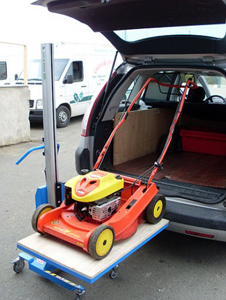 Élever et transporter et déposer dans un coffre de voiture. Fonction semi électrique c"est parfait. La personne en charge des colis est partiellement hémiplégique. C"est donc une grande aide pour elle.