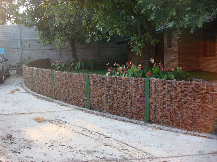 Ces clôtures sont en faite des gabions remplis d’écorces de cosses de noix de coco.