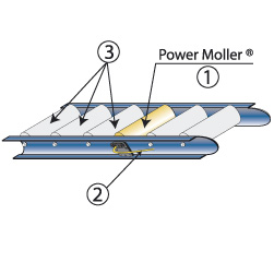 Conception et caractéristiques : -Le moteur asynchrone courant alternatif 1 couplé au frein à manque de courant 4 et le réducteur planétaire graissé à vie 2 sont intégrés dans le tube 3 pour entraîner les charges directement -Absorbeur de chocs pour protéger le réducteur -Fonctionnement continu (< 30 min) ou intermittent (720 démarrages/heure et facteur de marche ED < 60 %) -Vitesse de 4 à 30 m/min -IP54, 55 et 65, salle blanche -Monophasé ou triphasé, 50 ou 60 Hz, de 100 à 415V