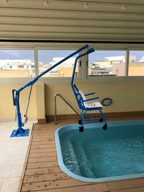 Ce lève-personne fixe sur batterie pour PMR est une solution innovante facilitant l'accès aux piscines et aux spas pour les personnes à mobilité réduite.