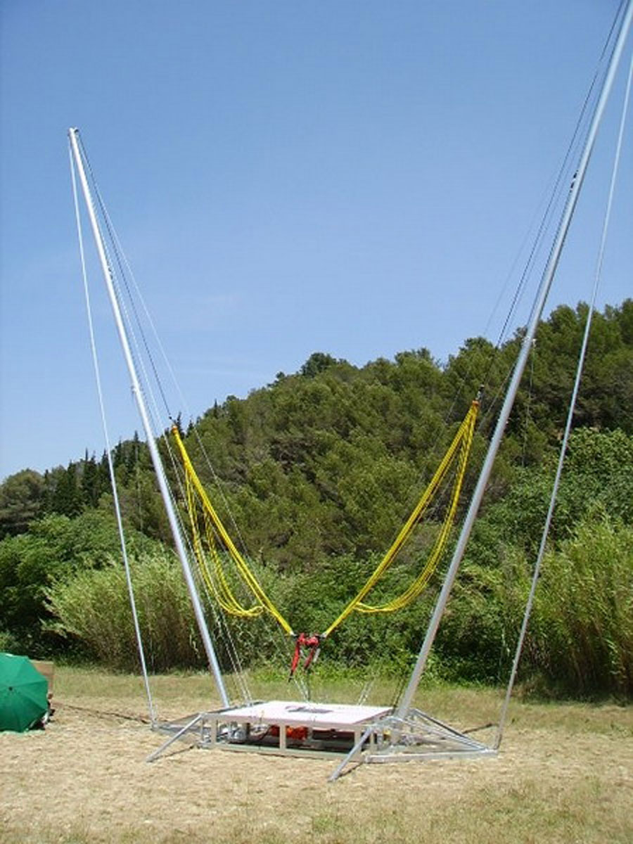 C'est une attraction constituée d'un socle métallique démontable de 40 m² posé au sol sur lequel prennent place deux mâts de 15 mètres chacun fait en trois parties (6 m, 6m et 3m) également démontables.