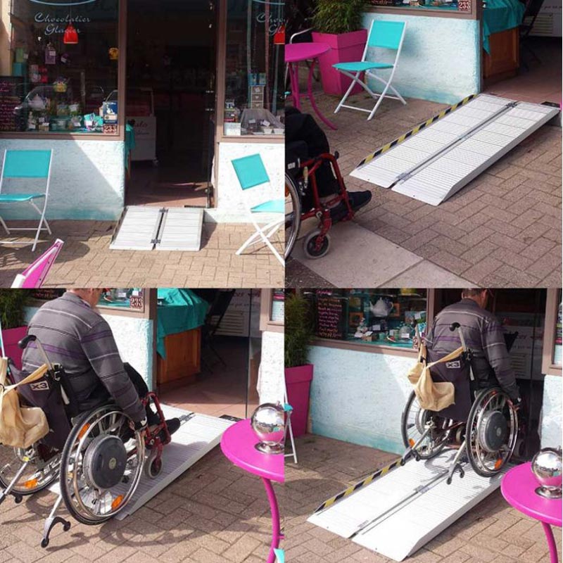 Rampe d'accès pour PMR permet de franchir des dénivelés allant jusqu’à 27 cm, ce kit est conforme à la réglementation des Etablissements Recevant du Public (ERP).