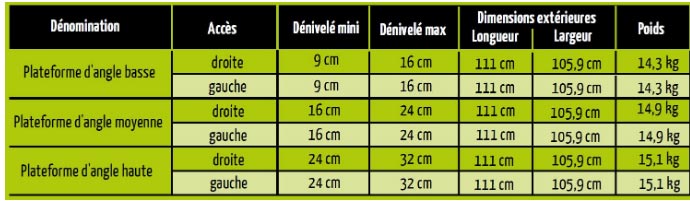 marche de hauteur 29 CM; Besoin plateforme a pied ajustable, avec rampe d"angle a droite de 150 cm
