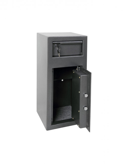 Avec sa porte en acier épaisse et son corps renforcé, ce coffre-fort protège efficacement vos fonds contre les intrusions. |