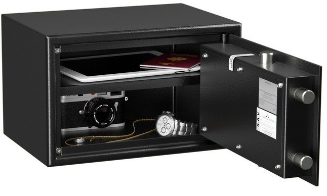 Ce coffre-fort de sécurité avec serrure permet de ranger des documents importants, des bijoux et d’autres objets de valeur.