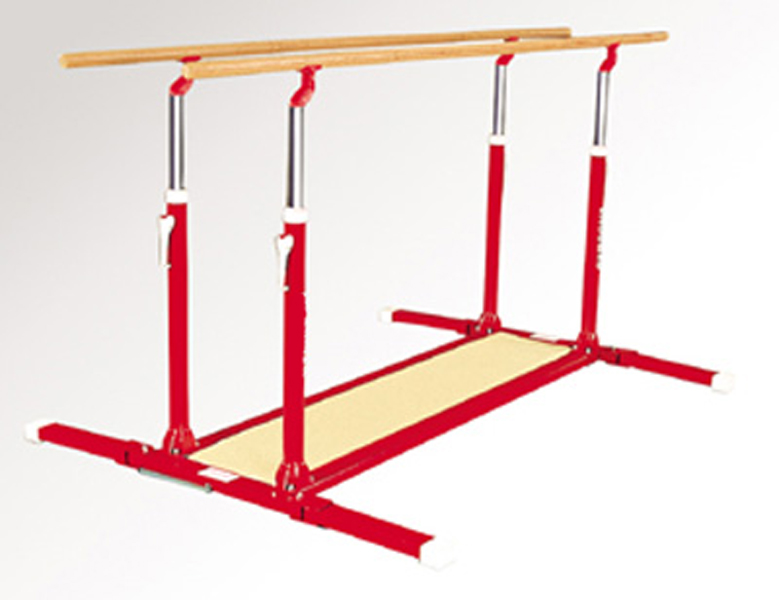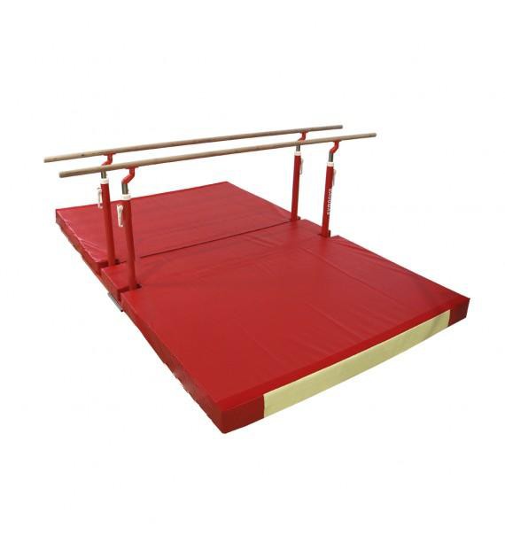 Ces barres parallèles avec pieds repliables sont équipées d'un levier de serrage avec excentrique et de porte-mains en bois multiplis de 3,50 m.