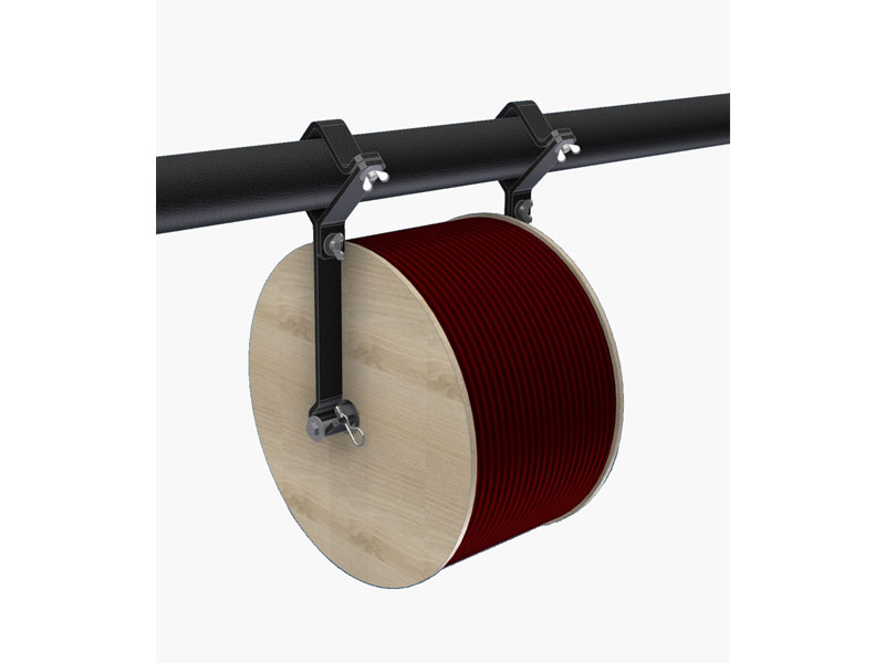 Sur un axe : cette configuration est envisageable pour les tourets de grand diamètre, soit un seul touret par niveau de stockage. Un axe sur suspente réglable : chaque touret est suspendu sur un axe de même largeur, les suspentes se déplacent latéralement sur un axe porteur permettant de faire évoluer le stockeur rotatif selon les besoins. Sur balancelles : chaque touret peut être pose sur une balancelle. celle-ci comportera des « rouleaux fous » pour faciliter le déroulement des câbles si nécessaires.