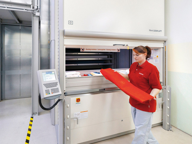 Moderniser le stockage des rouleaux de tissu et libérer de la surface dans votre service en installant une tour de stockage de type Lift.