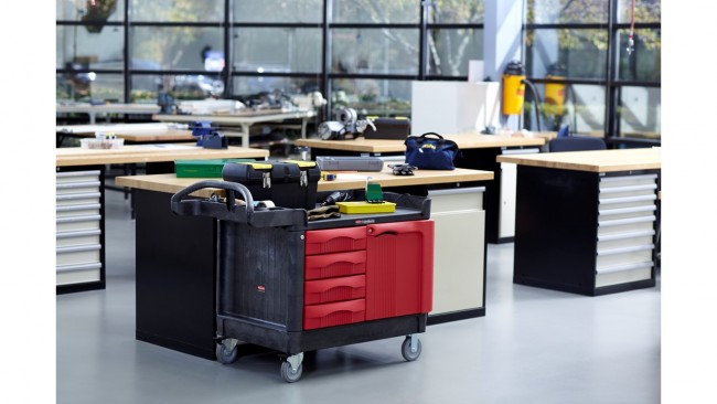 - Armoire à porte et tiroirs de 10 cm de profondeur pour une solution modulable avec compartiments intégrés pour outils et accessoires.