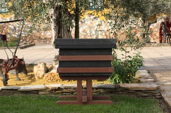 Plastique recyclé Dimensions : 60 x 60 cm Hauteur : 44 ou 70 cm Sans ou avec piétement