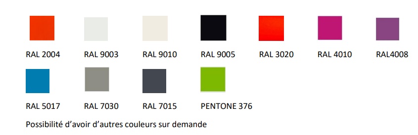 Elle est disponible avec un choix de couleurs illimité, permettant une intégration parfaite dans tous les environnements :