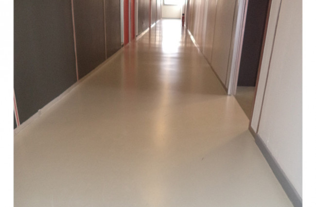 L'avantage du sol en résine polyuréthane est l’absence de joint et son étanchéité, idéals pour faciliter l’entretien.
