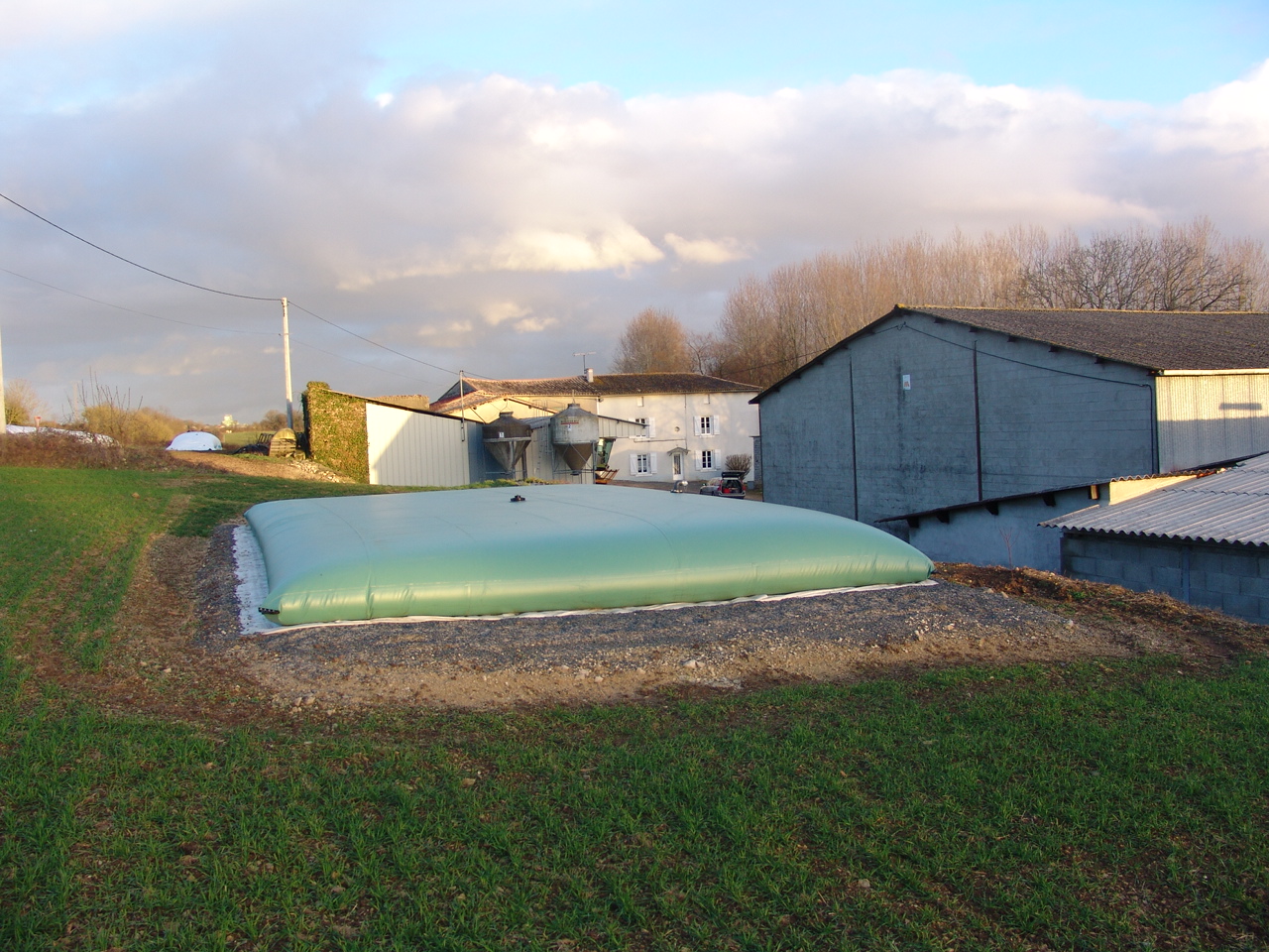 Il faudrait un orifice de remplissage à une extrémité en partie haute et un trop plein à l"autre extrémité en partie haute aussi. Un orifice de puisage serait à prévoir au dessus. Actuellement l"eau arrive et repart par un tuyau PVC de 100mm de diamètre.