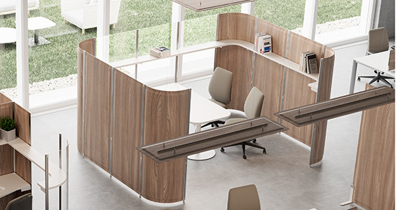 Les panneaux sont des modules et cloisons acoustiques amovibles, destinés à supporter les plateaux de bureau et des étagères.