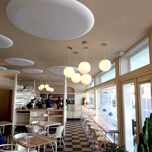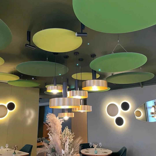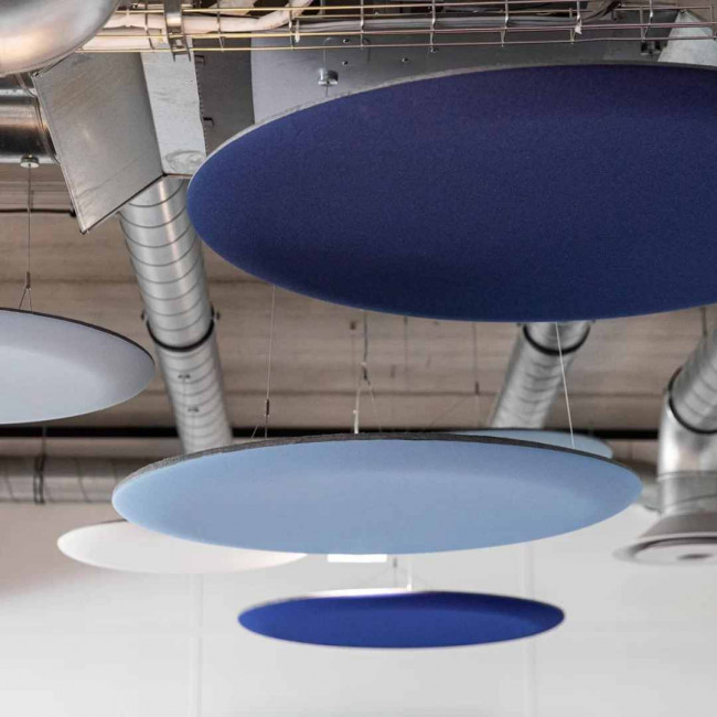 Demande de prix pour Panneau acoustique suspendu - Forme ronde - Fixation à hauteur réglable - Epaisseur : 35mm (+/- 5mm) - Coefficient d’absorption : αw = 1 (classe A)