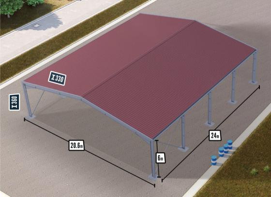 Largeur de 20,60m pour laisser passer avec facilité vos machines, véhicules et matériaux