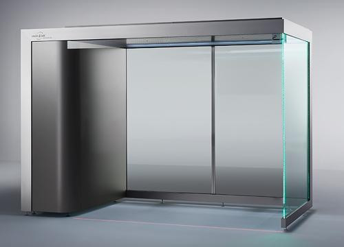 - La variante "charge d’incendie neutre" est proposée dans les domaines ou une exigence vis-à-vis du classement au feu est spécifiée. La MPA Dresden certifie l’utilisation de matériau non inflammable pour la réalisation de cette cabine fumeur à "charge d’incendie neutre".