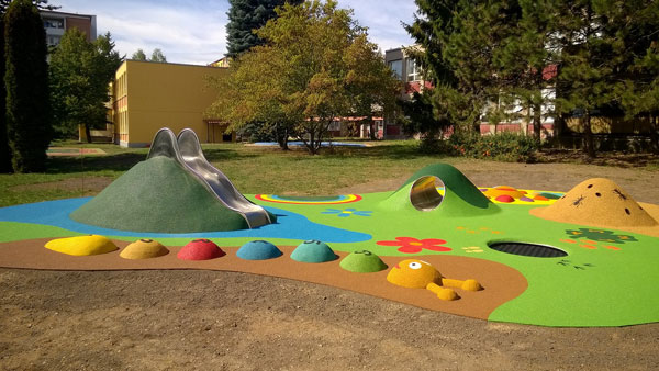 Je souhaiterai un devis pour un aire de jeux en sol souple EPDM similaire à l"exemple avec le toboggan et la chenille. En vous remerciant