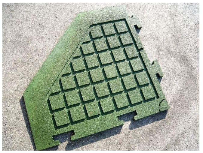 Cette dalle caoutchouc de 7,45 m² est composée de 4 éléments d’environ 1,50 m x 1,50 m chacun.