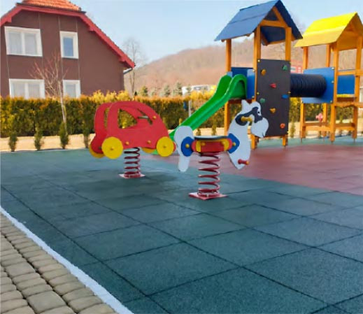Conçue en caoutchouc SBR de haute qualité, cette dalle antidérapante est spécialement recommandée pour les espaces extérieurs destinés aux jeunes enfants.