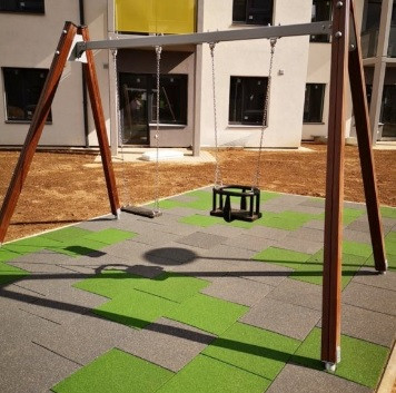 Ces dalles sont spécialement conçues pour les aires de jeux d'enfants.