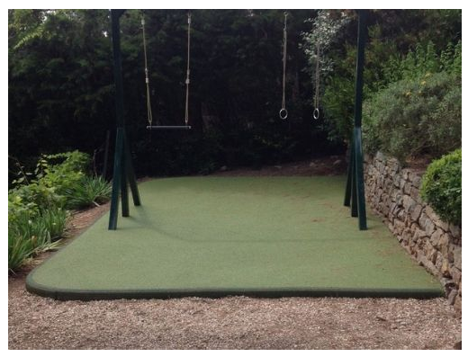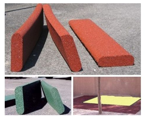 - Composés de granulats de caoutchouc recyclés, liés par une résine élastomère de polyuréthane teintée dans la masse