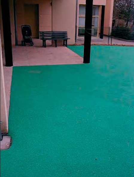 10/08/2021La crèche dispose de 2 terrasses actuellement aménagées avec du revêtement antichoc (dalles de 40x40) abimé.