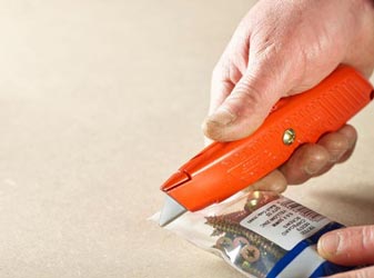 Le système autorétractable de la lame offre une sécurité optimale en rétractant automatiquement la lame lorsqu'on lâche le bouton poussoir.