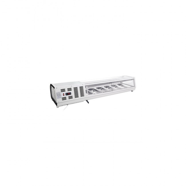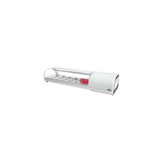 Cette vitrine à tapas pour usage commercial permet une excellente mise en avant de vos spécialités grâce aux éclairages LED, ainsi qu'au design moderne avec une vue panoramique sur les produits.