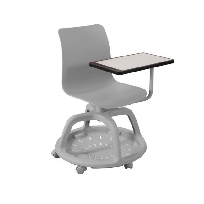 - Chaise avec panier sur roulettes pour sol dur et tablette écritoire