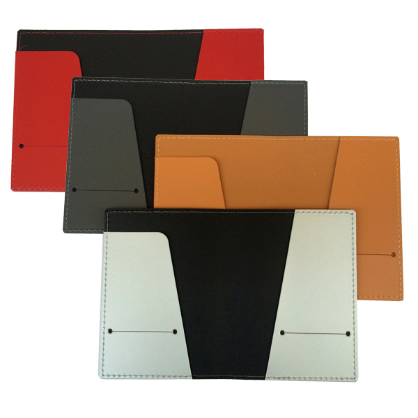 Un nouveau modèle avec des encoches dans les rabats intérieurs permettant de loger des cartes de visites, billets et tickets est disponible.